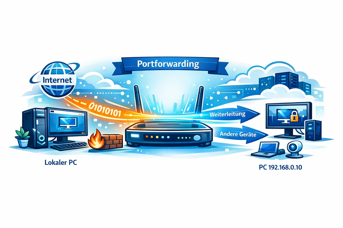 - Externe Anfrage → Router → Weiterleitung an internen PC